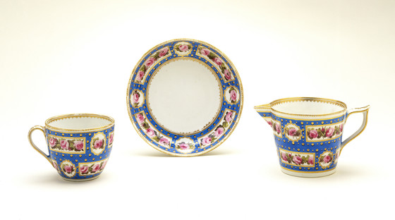 Cups: Height: 2 7/8 in. (7.3 cm) each; Saucers: Diameter: 5 1/4 in. (13.34 cm) each; Cream Jug: 2 7/8 x 5 1/4 in. (7.3 x 13.34 cm)