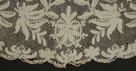 Linen embroidery (chain stitch) on linen filet net