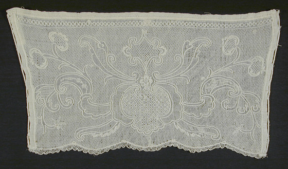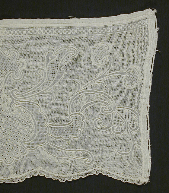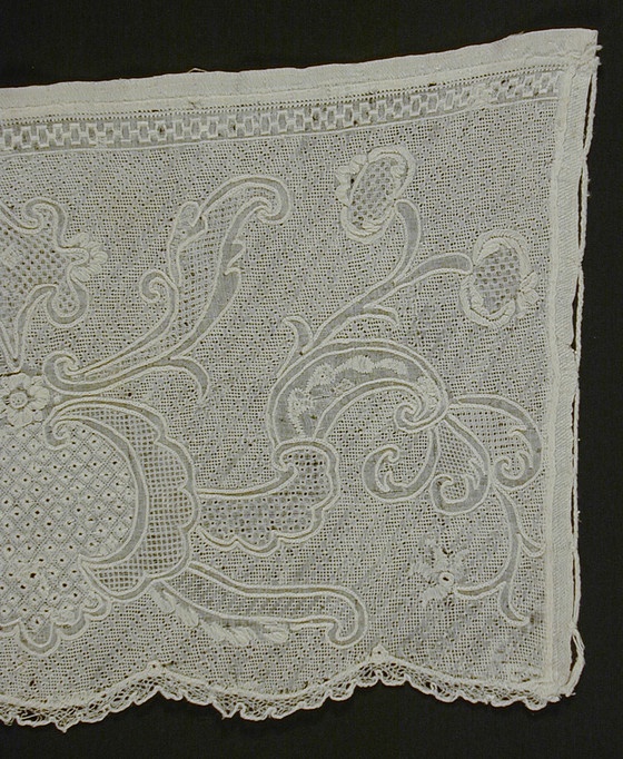 White linen Dresden work on white linen with linen bobbin lace edging