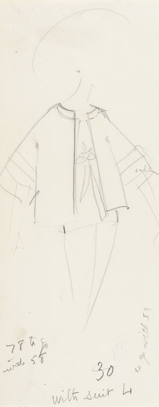 a) Large Fashion Sketch: 16 1/4 x 12 1/4 in. (41.27 x 31.12 cm); b) Small Fashion Sketch: 12 1/4 x 4 7/8 in. (31.12 x 12.38 cm)