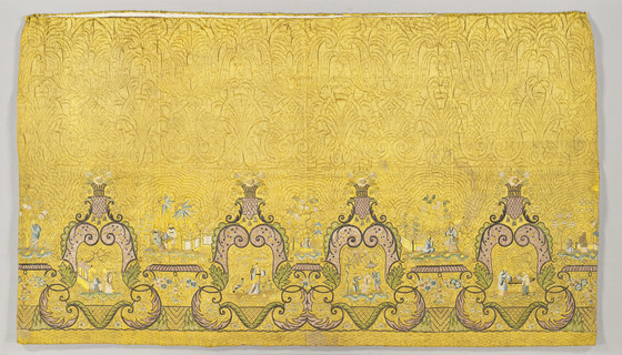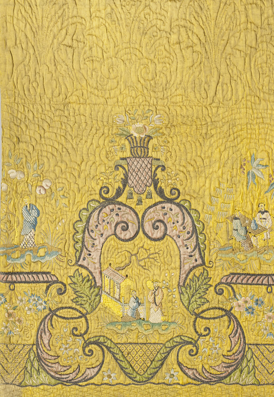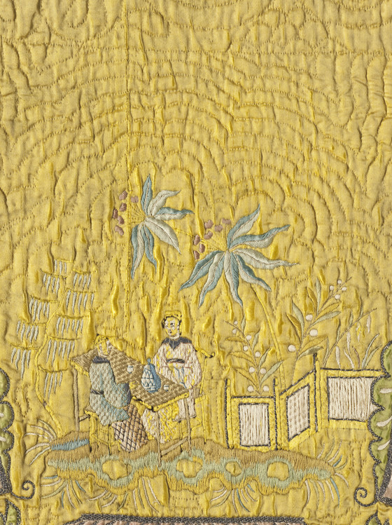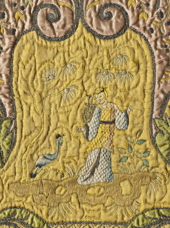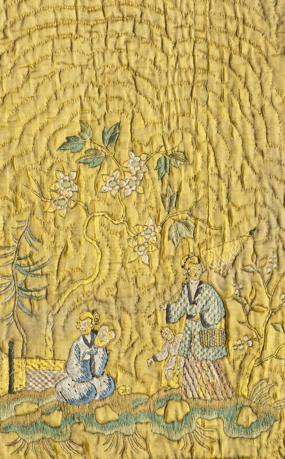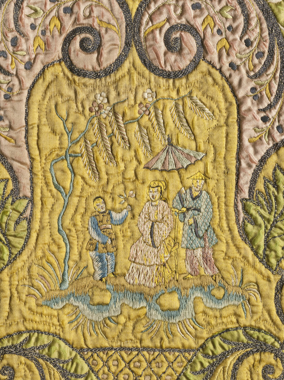 Silk satin, quilted, with silk and metallic-thread embroidery