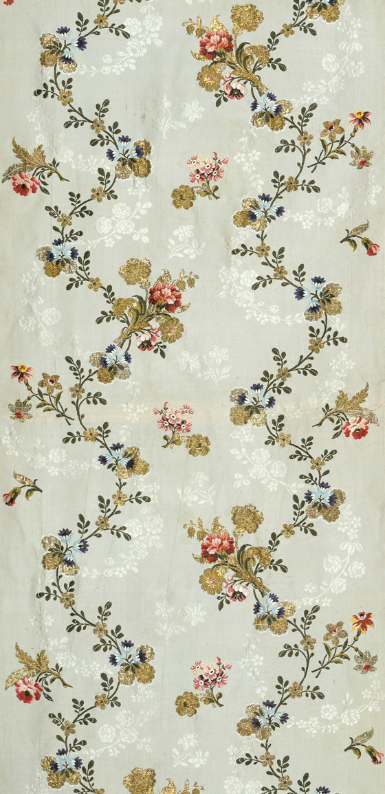 Silk and metallic yarn brocaded on silk damask ground