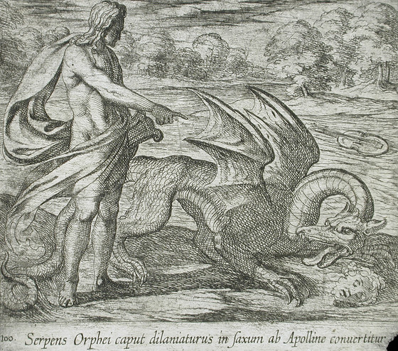 Alternate Title: Serpens Orphei caput dilaniaturus in saxum ab Apolline convertitur