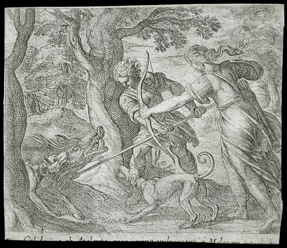 Alternate Title: Calidonius ab Atalanta aper primo vulneratus a Meleagro interimitur