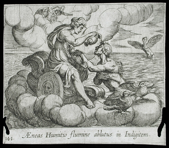 Alternate Title: Aeneas Humitio flumine ablutus in indigitem