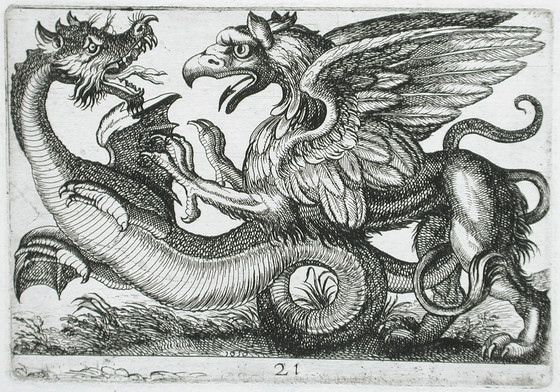 Two Chimerical Animals Fighting