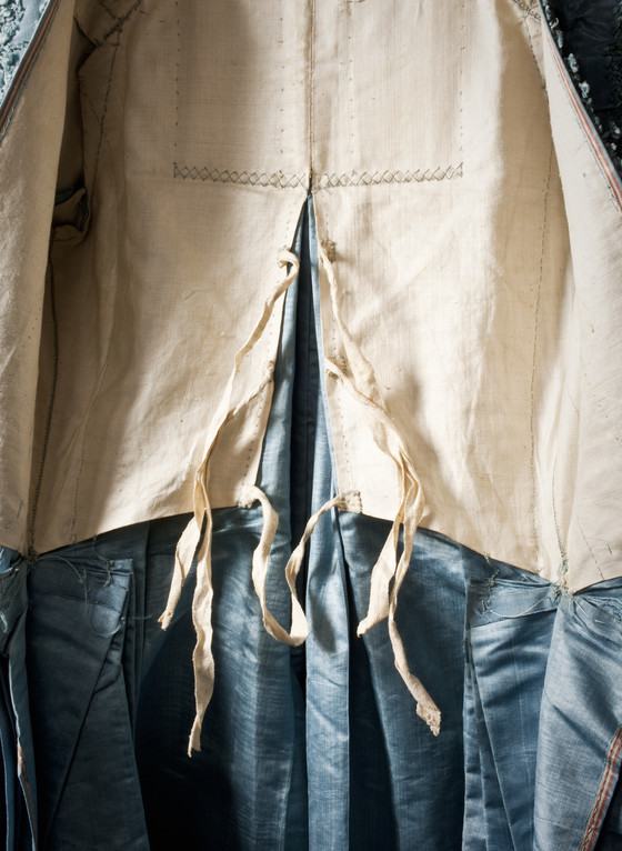 Silk plain weave (faille), moiré finish, with silk passementerie