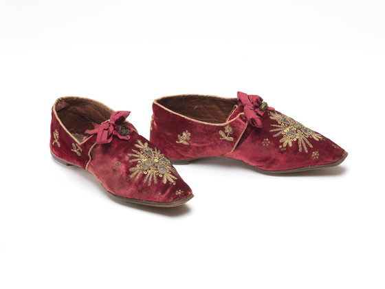 Silk velvet with metallic-thread embroidery, sequins, and leather