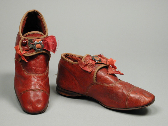 Leather with cotton plain weave trim, silk satin ribbon, and metal ornament