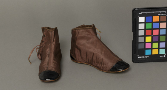 Patent leather, silk plain weave, and leather, with cotton braid