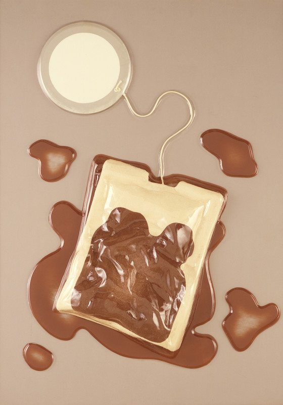 Laminated vacuum-formed vinyl, screenprinted vinyl, felt and plexiglas; rayon card
