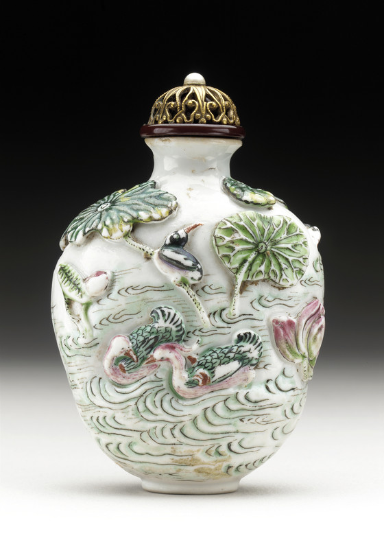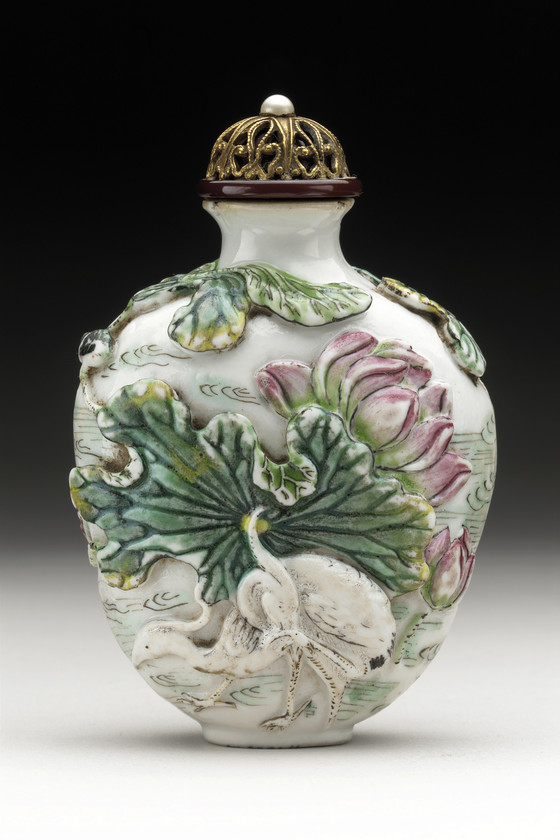 Snuff Bottle (Biyanhu) with Lotus and Water Birds