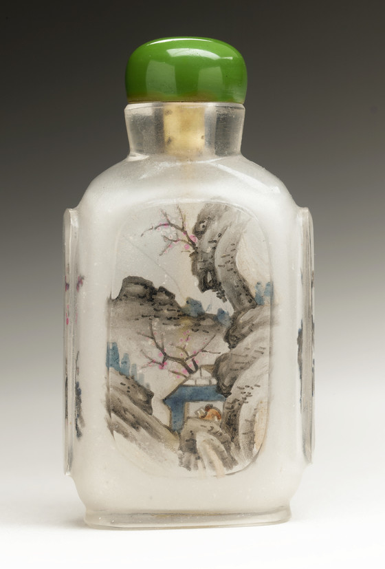 Molded glass with inside painted decoration, with glass stopper