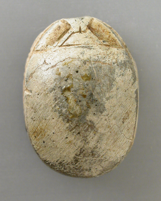 Scarab Depicting Two Stylized Human Figures on either Side of a Gazelle
