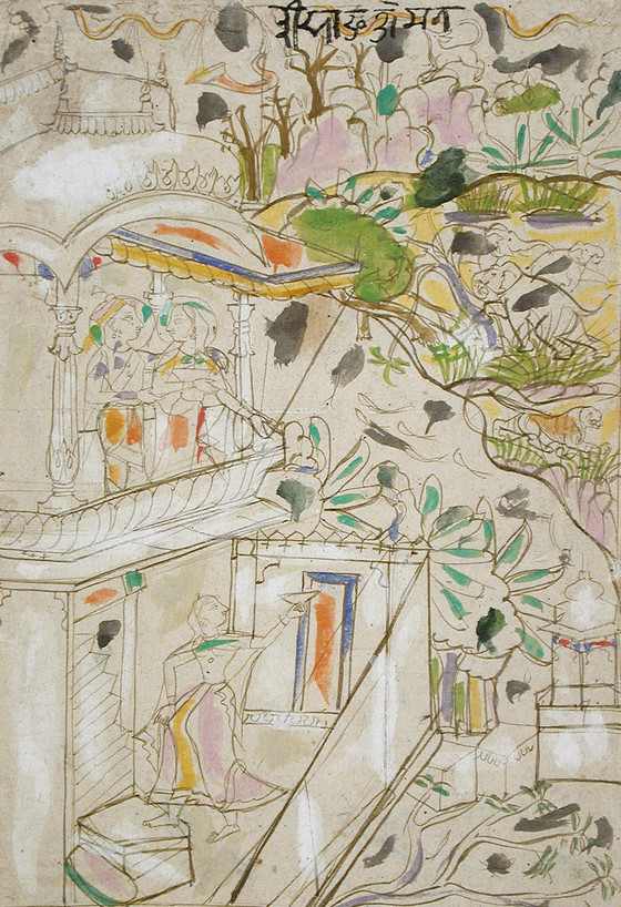 The Month of Bhadon (August-September) (recto), The Month of Sawan (July-August) (verso), Folio from a Barahmasa (The Twelve Months)
