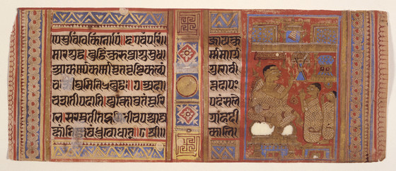 Kalaka Conversing with Two Monks (recto) and Abduction of Sarasvati (verso), Folio from a Kalakacharyakatha (Story of the Teacher Kalaka)