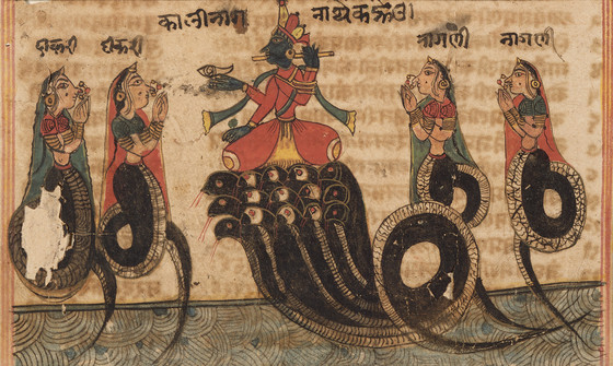 Krishna Quelling the Serpent King Kaliya (recto), Text (verso), Folio from a Bhagavata Purana (Ancient Stories of the Lord)