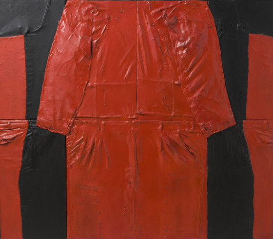 Enamel and oil on cloth on wood