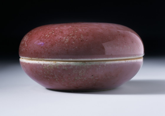 Wheel-thrown porcelain with mottled peach-bloom glaze