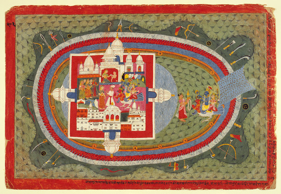Krishna Rescues the 16,000 Abducted Women in the Fortress of the Demon King Narakasura, Folio from a Bhagavata Purana (Ancient Stories of the Lord)