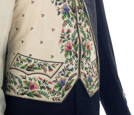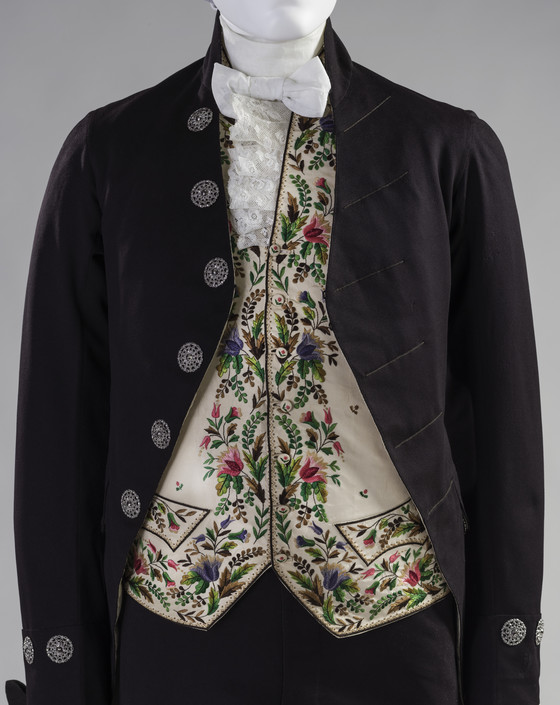 h. Vest: Silk cut and voided velvet with silk supplementary patterning