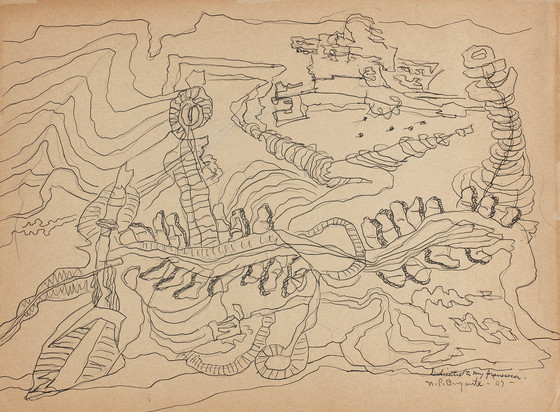 Ink and graphite on buff paper