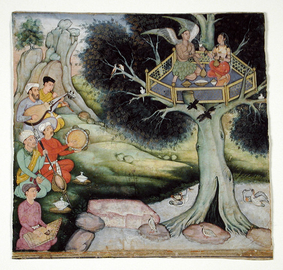 Somaprabha and a Celestial Nymph Listening to Music (recto), Calligraphy (verso), Folio from a Kathasaritsagara (Ocean of the Streams of Stories)