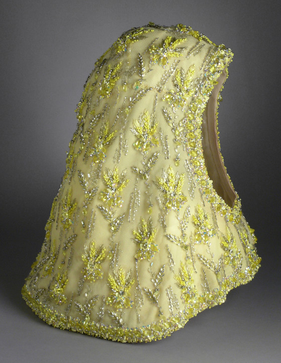 Cotton, silk, silk and metallic threads, rhinestones, sequins and beads