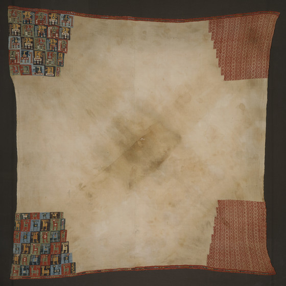 Camelid fiber and cotton plain weave with supplementary weft patterning borders of complementary weft weave and weft-faced plain weave