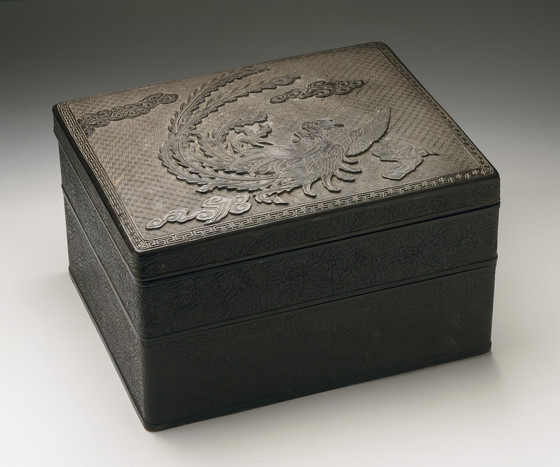 Two-Tiered Rectangular Stationery Box with Phoenix Design