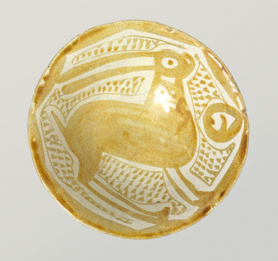 Earthenware, overglaze luster-painted