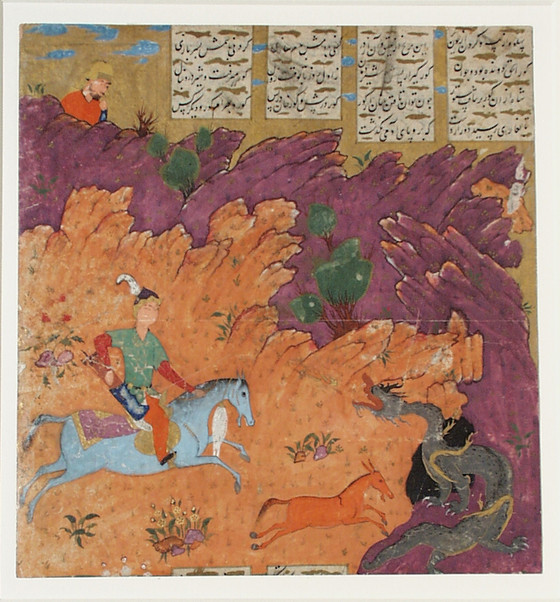 Bahram Gur with the Dragon, Page from a Manuscript of the Khamsa (Quintet) of Nizami