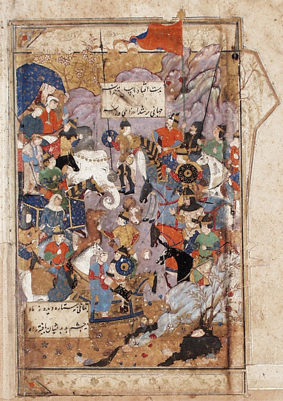 A Major Personage Arriving on a White Elephant, Page from a Manuscript of the Haft Awrang (Seven Thrones) of Jami