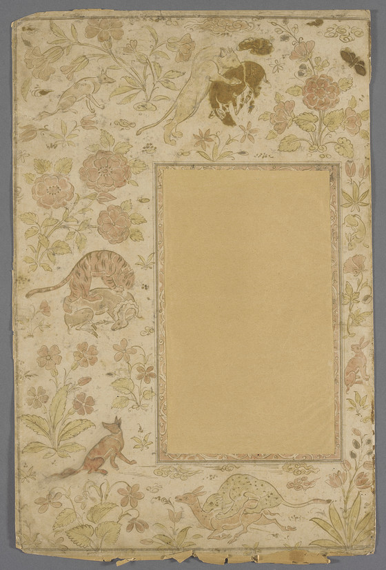 Album Page with Decorated Border with Animals and Flowers