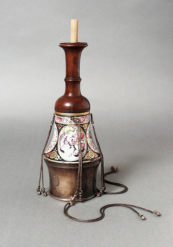 Brass, enamel and wood