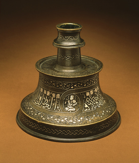 Brass, engraved and inlaid with silver
