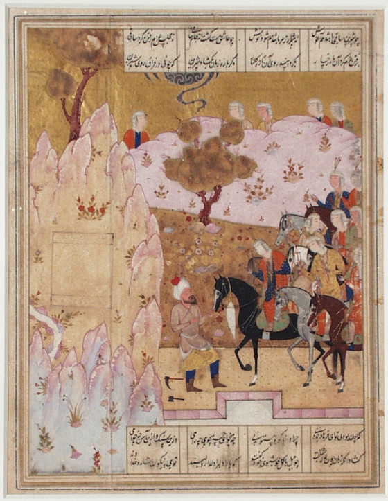 Shirin Visiting Farhad at Mount Behistun, Page from a Manuscript of the Khamsa (Quintet) of Nizami