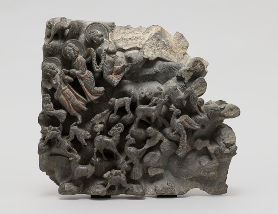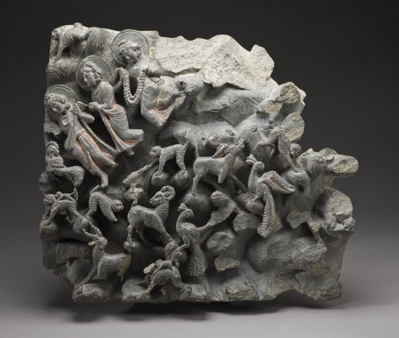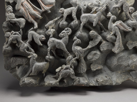 Gods and Animals in a Landscape, Fragment from a Scene of Buddha Shakyamuni's Sermon to Indra