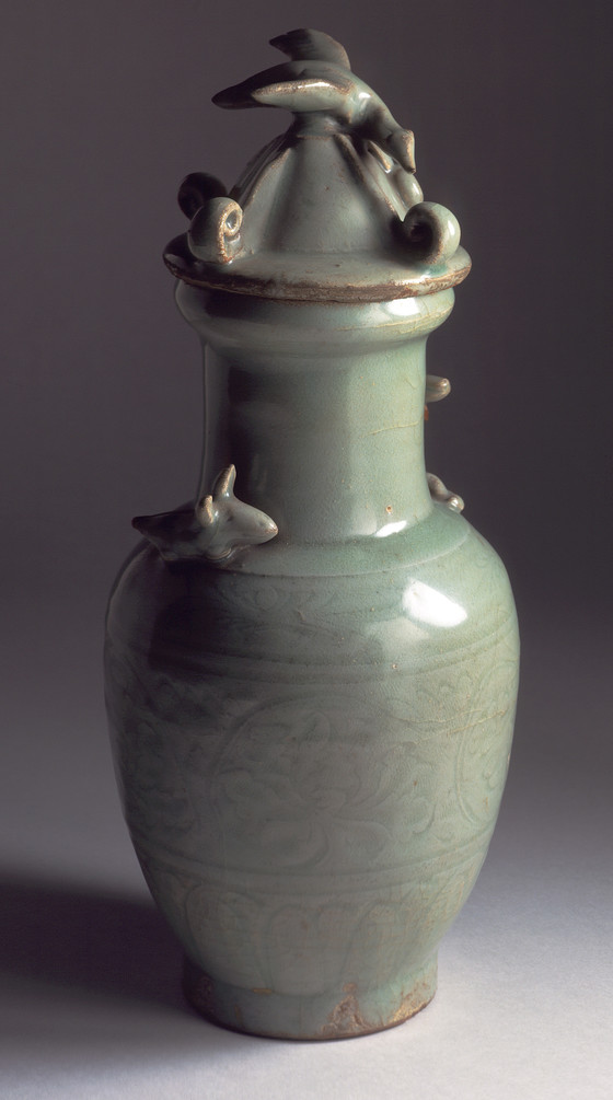 Longquan ware, wheel-thrown stoneware with incised, modeled, and applied decoration and green glaze