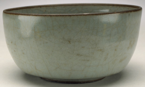Guan ware, wheel-thrown stoneware with crackled blue glaze