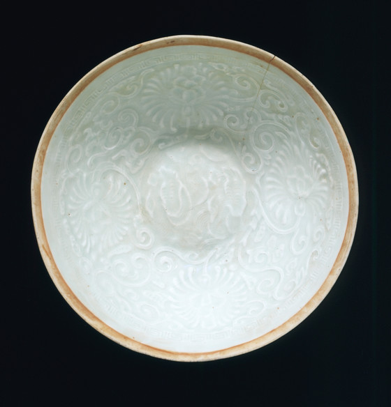 Qingbai ware, molded porcelain with impressed decoration and pale blue glaze