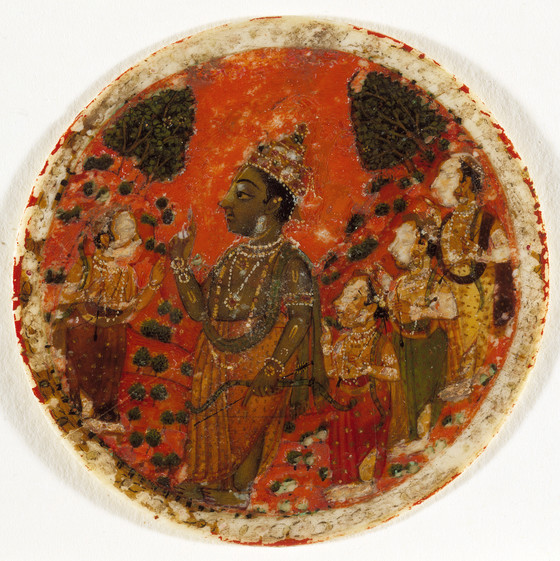 Rama and Four Warriors, Number Four of the Rama Suit, Playing Card from a Dashavatara (Ten Avatars) Ganjifa Set