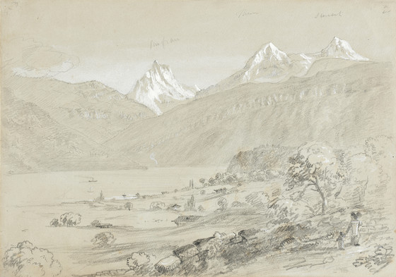 Graphite and white gouache on gray-green paper