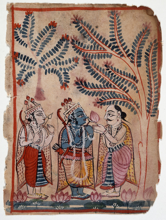 Rama and Lakshmana are Venerated by a Princely Man, Folio from a Ramayana (Adventures of Rama)