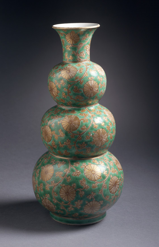 Vase (Ping) in the Form of a Gourd with Floral Scrolls