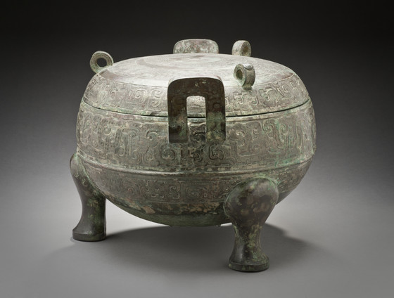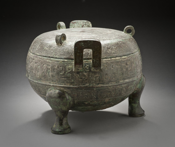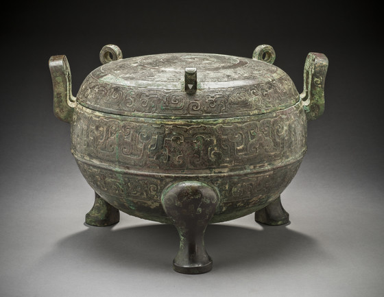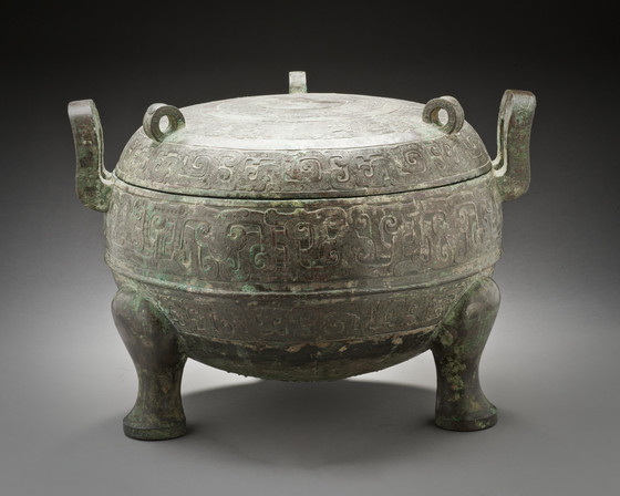 Lidded Ritual Food Cauldron (Ding) with Interlaced Dragons