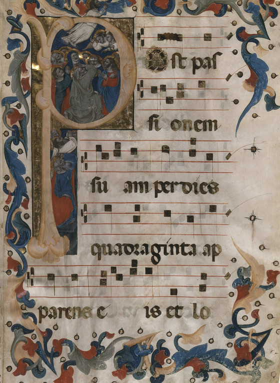 Folio from an Antiphonary with Initial P Containing 'The Ascension of Christ'