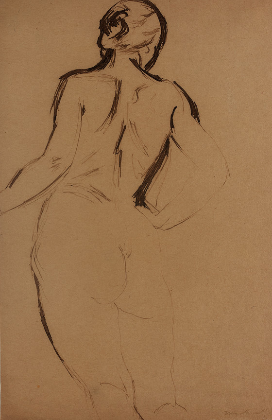 Standing Female Nude with Hand on Hip, Seen from the Back