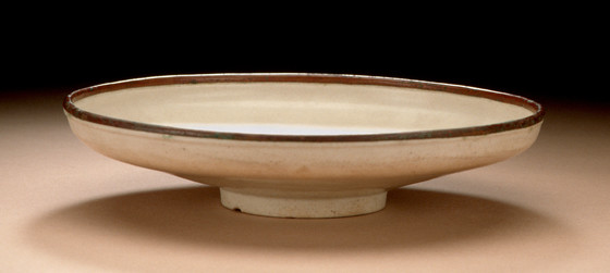 Ding-type ware, wheel-thrown stoneware with transparent glaze and metal rim