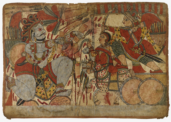 Abhimanyu Shatters Boulder Held by Ghatotkacha, Scene from the Story of the Marriage of Abhimanyu and Vatsala, Folio from a Mahabharata ([War of the] Great Bharatas)